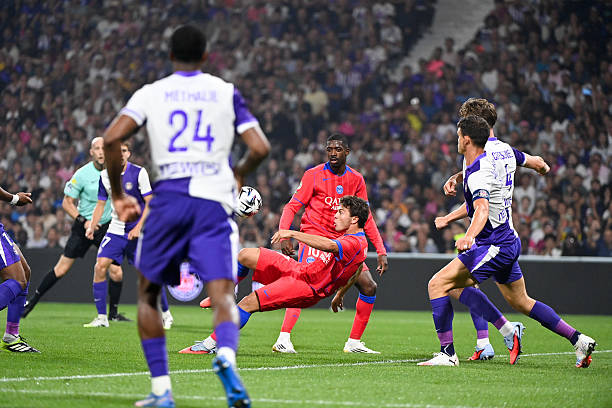 Trên sân Toulouse, PSG khởi đầu đầy ấn tượng khi trút đến 4 bàn thắng vào lưới chủ nhà chỉ trong 31 phút. Phút 7, từ pha dứt điểm hụt của Ousmane Dembele, Neves đỡ hai chạm rồi ngả người móc bóng chéo góc khiến thủ thành Toulouse chôn chân.